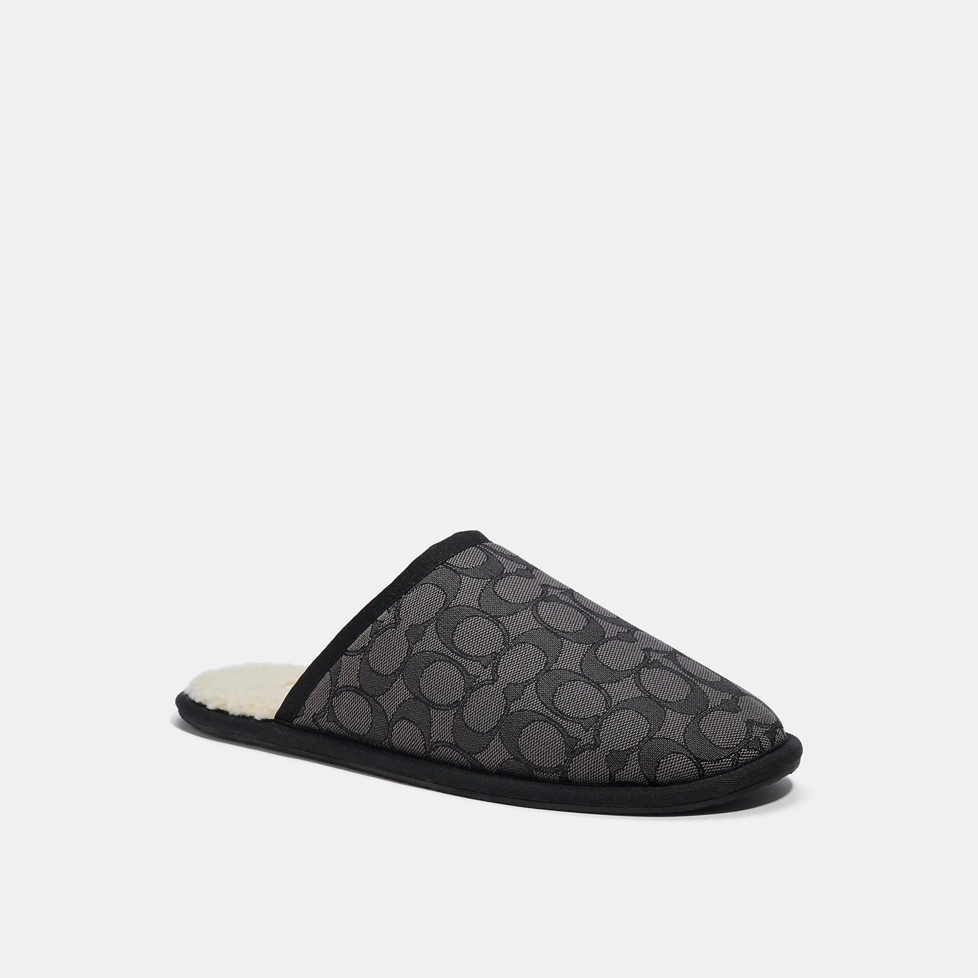 Signature jacquard upper Faux shearling lining and footbed Rubber outsole Slip on Style No. C7078
