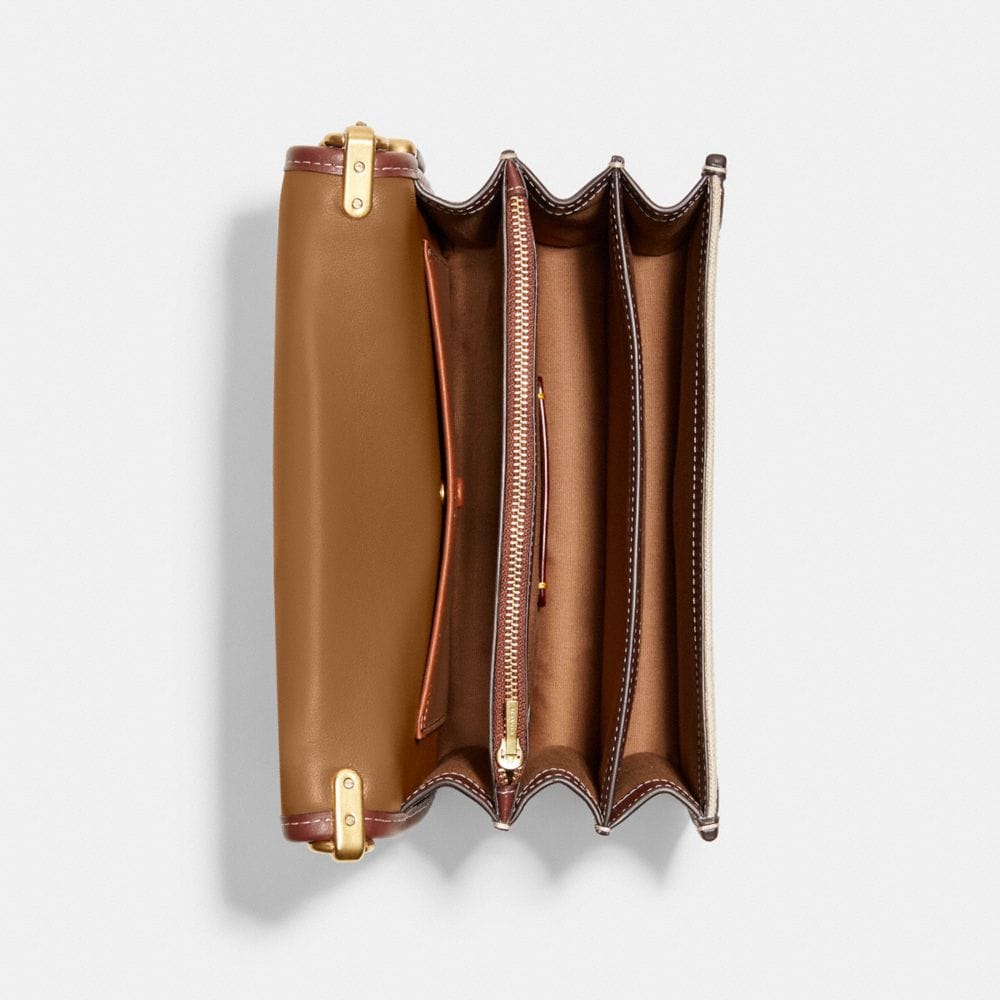 Detachable strap with 21 1/2" drop for shoulder or crossbody wear