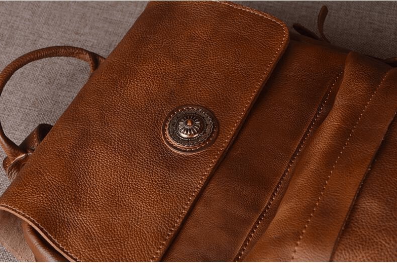 This backpack is the epitome of luxury and style. Made from high-quality first layer cowhide leather, it exudes sophistication and elegance. The trapezoid shape and contrasting colors add a touch of retro charm, making it stand out from other backpacks on the market.