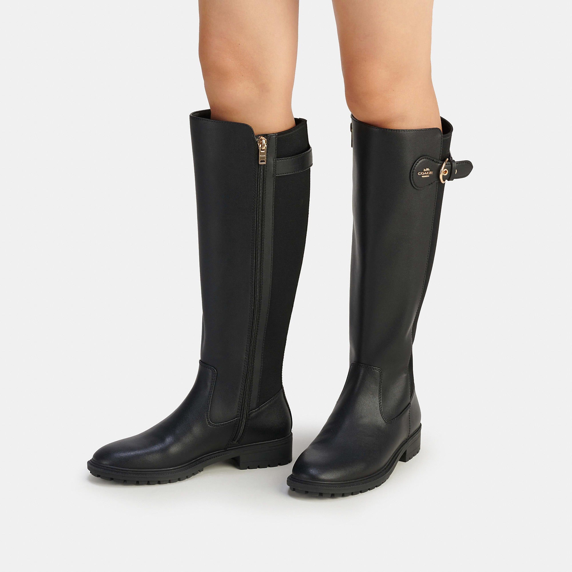Leather and elastic upper Signature jacquard and man-made leather lining man-made leather footbed Rubber outsole Zip closure Shaft - 14 1/2 height 14 1/4 circumference 1/2 heel Style No. CC771